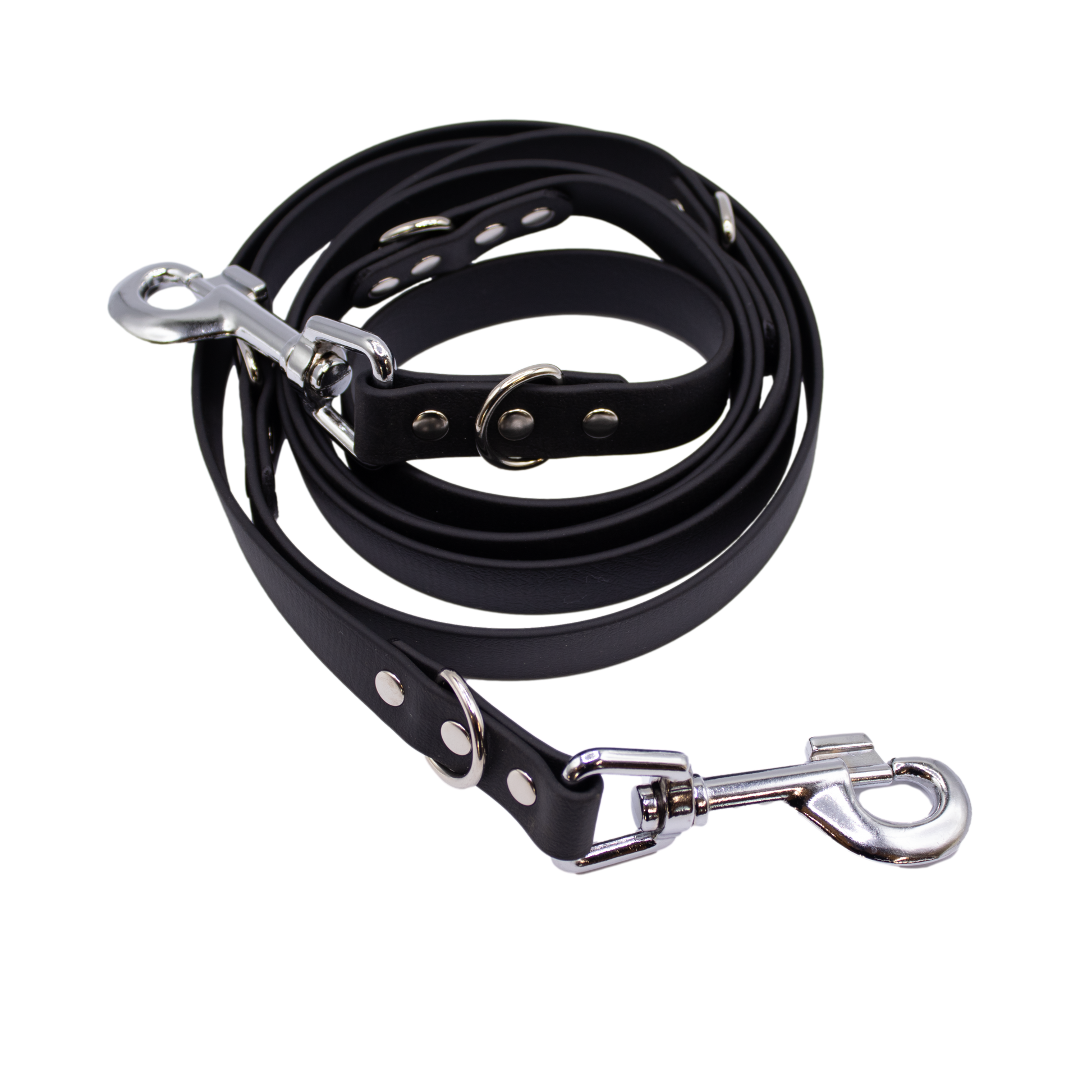 Each Longline is carefully handcrafted by Martin in Saltfleet just for you and your doggo. We use only Biothane—a tough, waterproof material that's simple to wipe clean and keeps smells at bay. Pick from over 50 vibrant Biothane colours, and choose between colour coated rivets, D-rings and Clips, or opt for Stainless Steel or Brass for added Durability, Strength and Rust Resistance—ideal for pooches who love splashing in water or mud. Need something longer, then take a peek at our Longlines. Contact us if you require any specific changes or requirements, we can make bespoke Double Ended Leads, Adjustable Training Leads, Longlines and Control Leads.